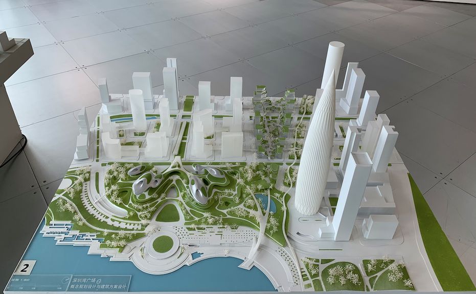 △在中国华润大厦展示的深圳湾广场设计概念模型